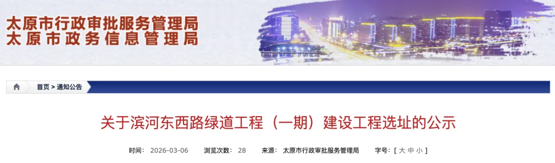 项目建设地点位于太原市小店区、迎泽区、杏花岭区、尖草坪区、万柏林区、晋源区。