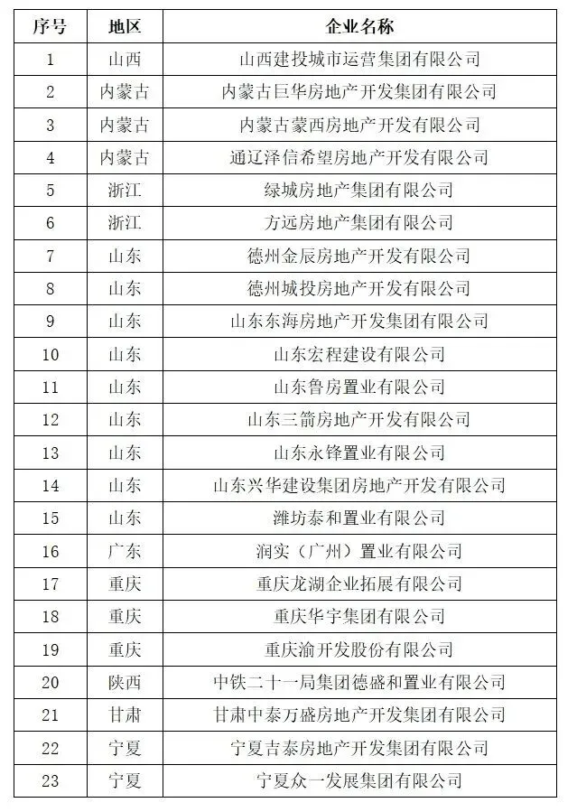 2026年第一批次AAA级信用房地产开发企业名单
