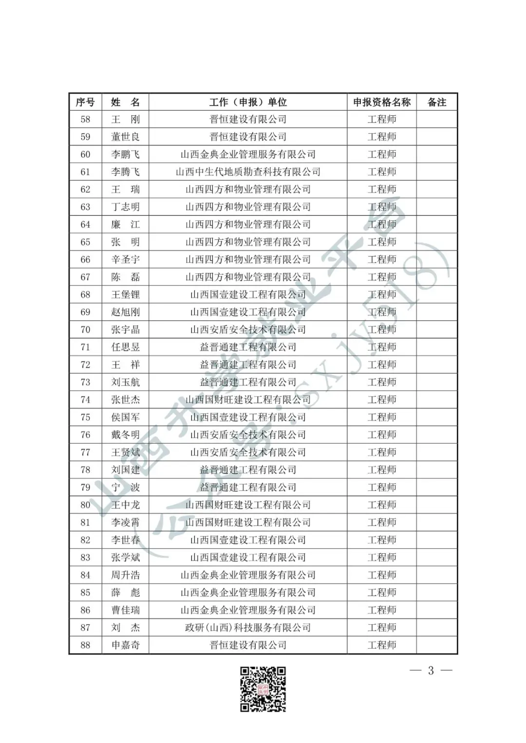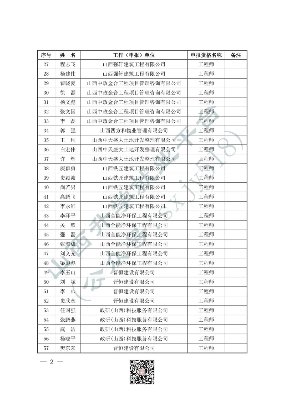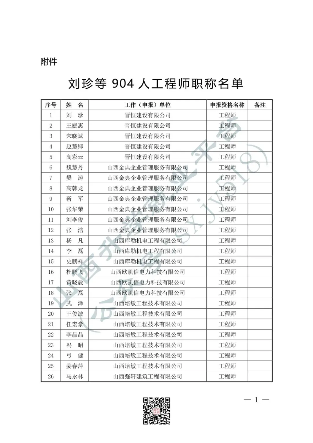 经审核,同意太原市自由职业者工程系列(人事代理)中级职称评审委员会于2026年2月11日评审通过的刘珍等904人工程师职称评审结果,现予以公布。