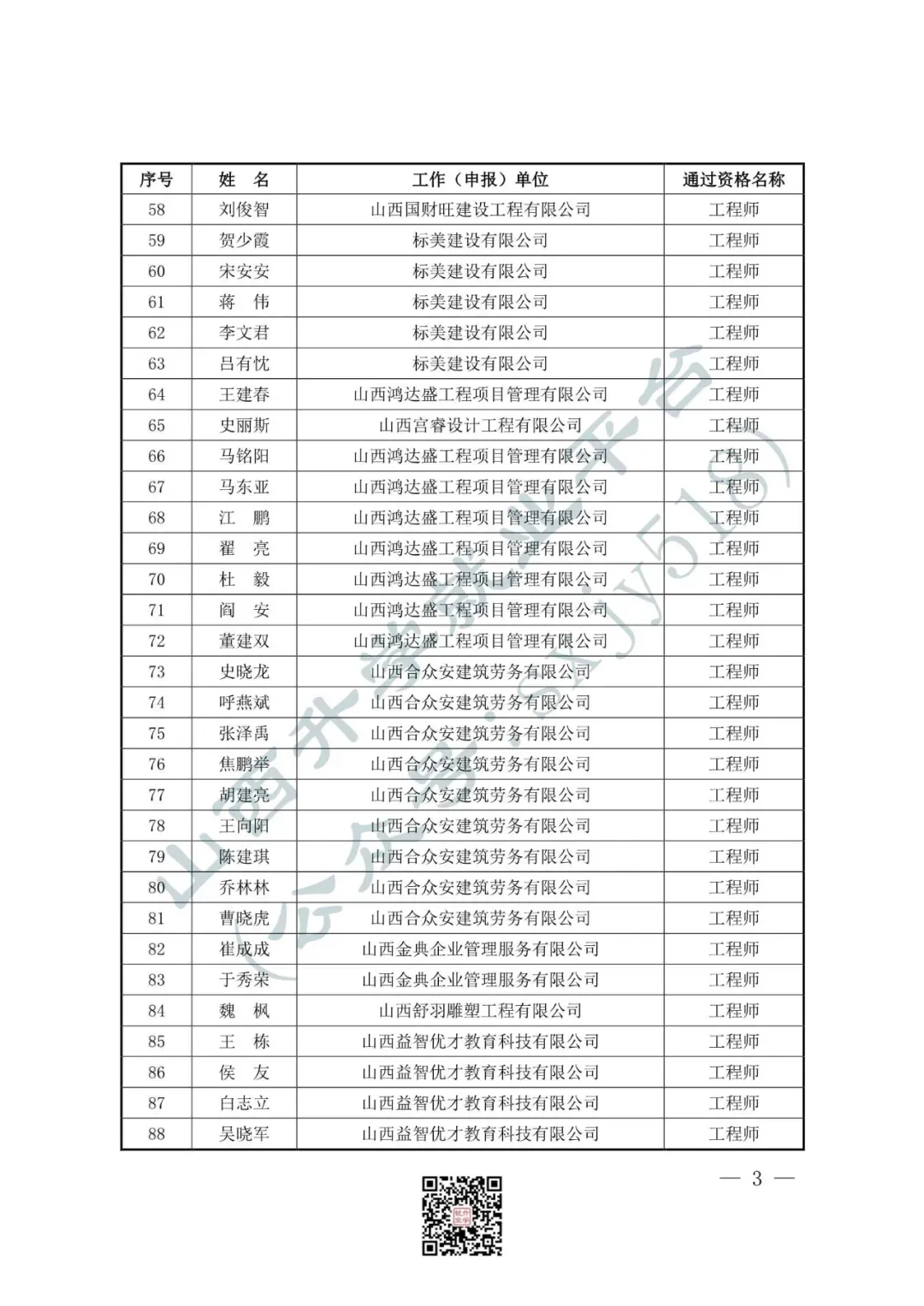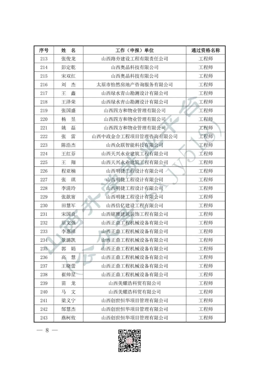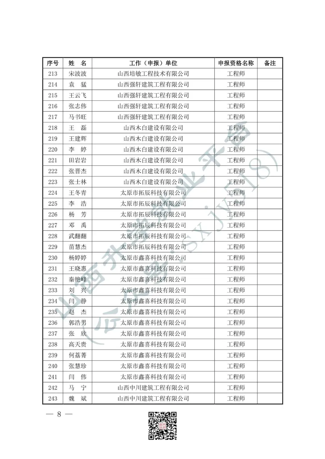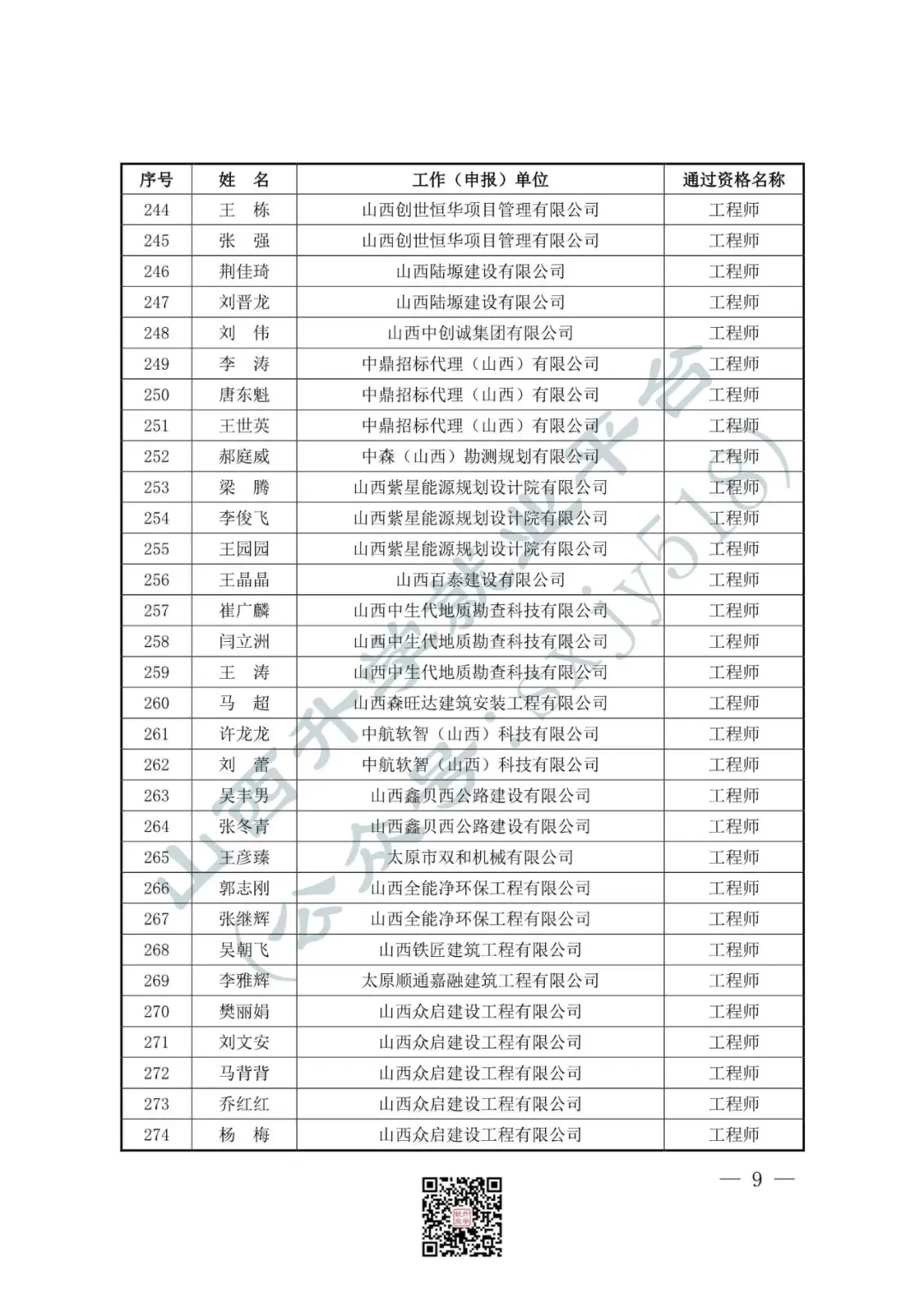 经审核,同意太原市自由职业者工程系列(人事代理)中级职称评审委员会于2026年2月11日评审通过的刘珍等904人工程师职称评审结果,现予以公布。