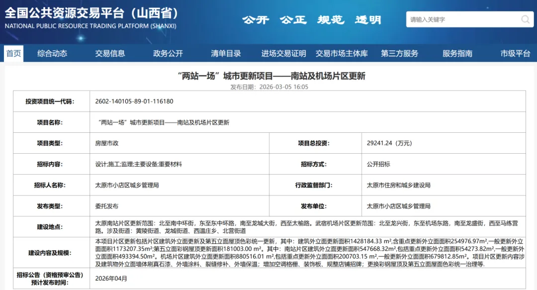 太原市“两站一场”城市更新—园林项目,是对“两站一场”片区的周边环境进行城市更新,更新内容包含绿化、铺装、城市家具及配套市政工程,拟选址地块为太原南站、太原武宿机场周边规划绿地。