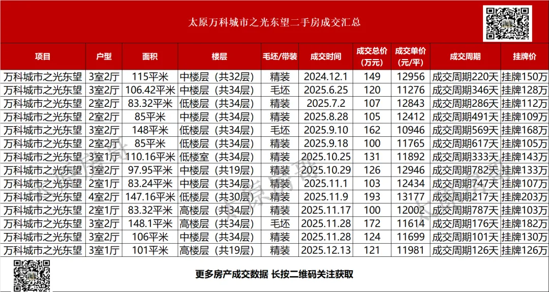 >太原万科城市之光东望又卖了二套,总成交14套!