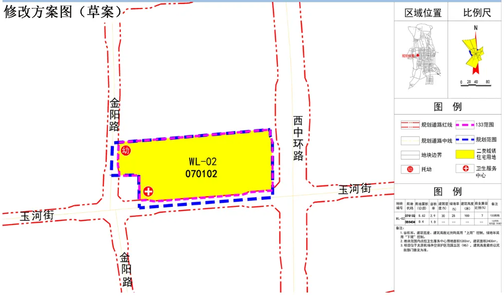 修改范围:北起铁路防护绿带、南至玉河街,西起金阳路、东至西中环路,规划总用地6.69公顷。