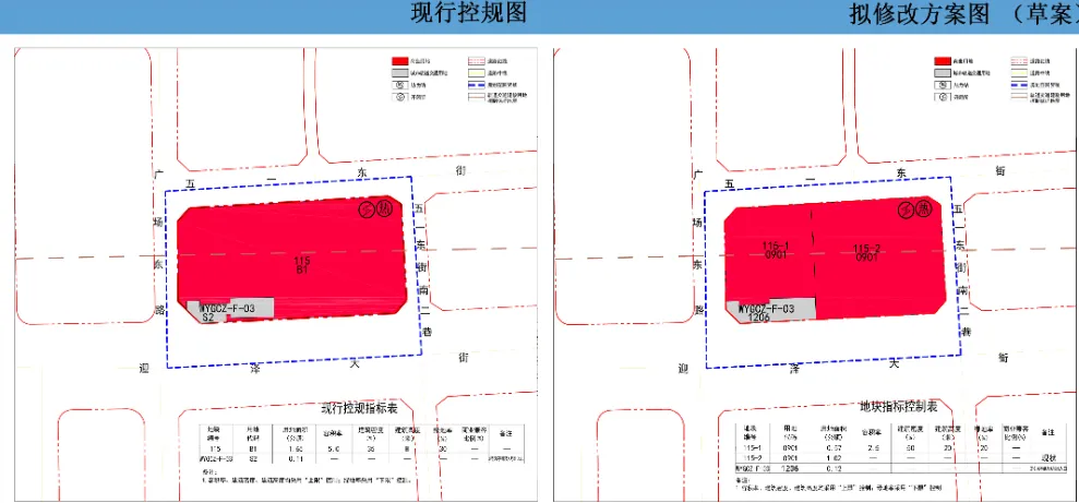 修改范围涉及现行YZ-02片区02街区115等地块。