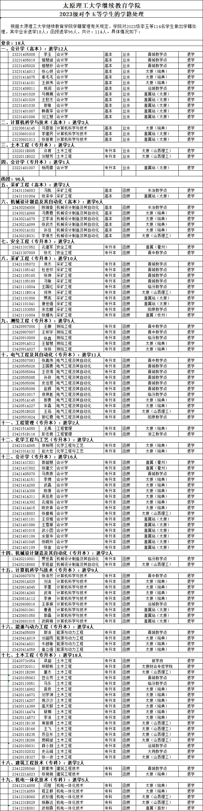 学籍处理 | 太原理工大学