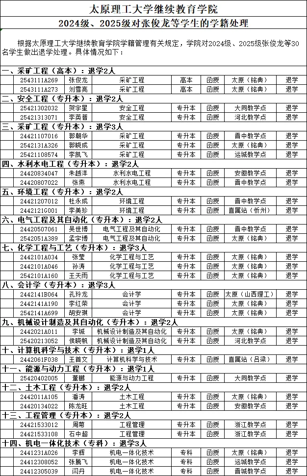 >学籍处理 | 太原理工大学