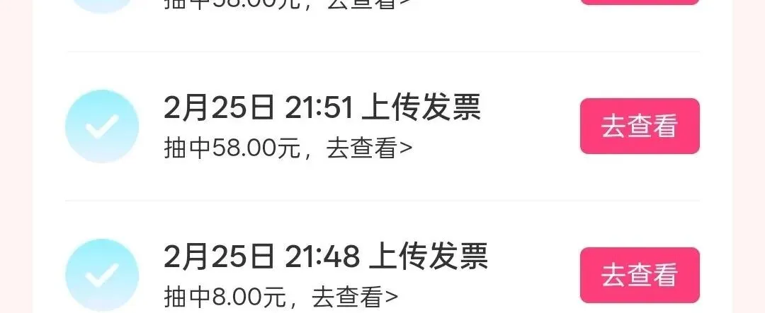 结果是超出预期的,太原的奖励实打实,我们上传了20几张发票,前后共抽得近700元的奖励。