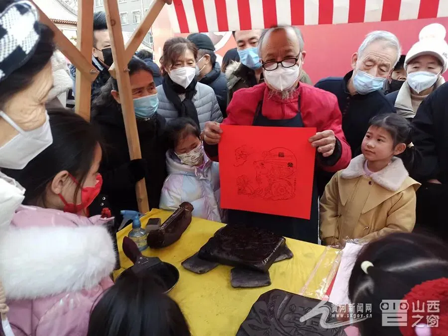 图为元宵节来临之际,太原艺术家现场赠“福”