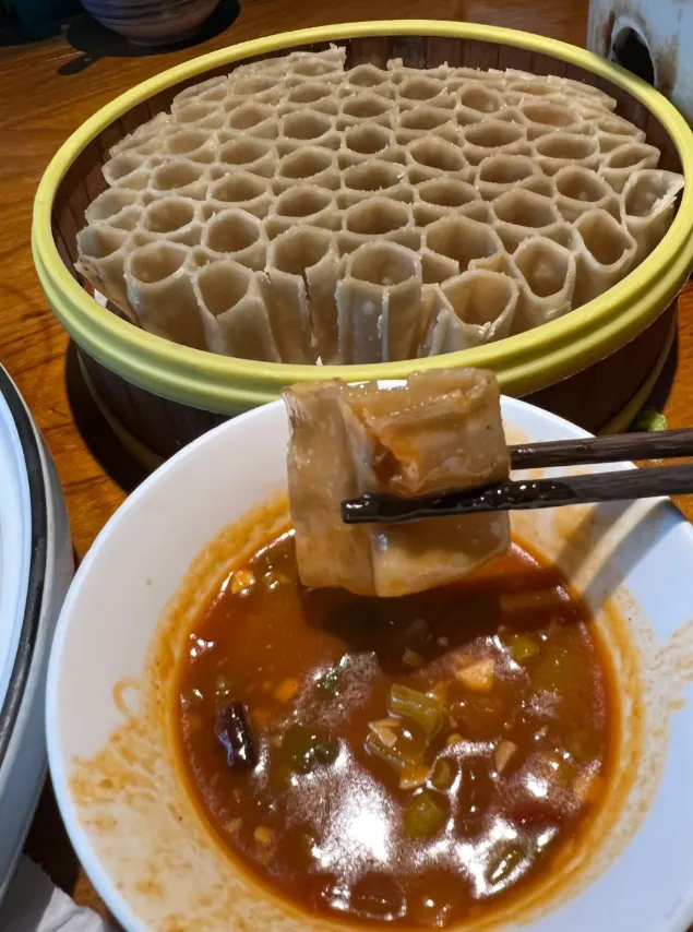 莜面栲栳栳:纯莜麦蒸熟,卷成小圈,一蘸蒜醋汤,筋道中带着草木的香。去雁门关一带的农家乐试试,接地气。