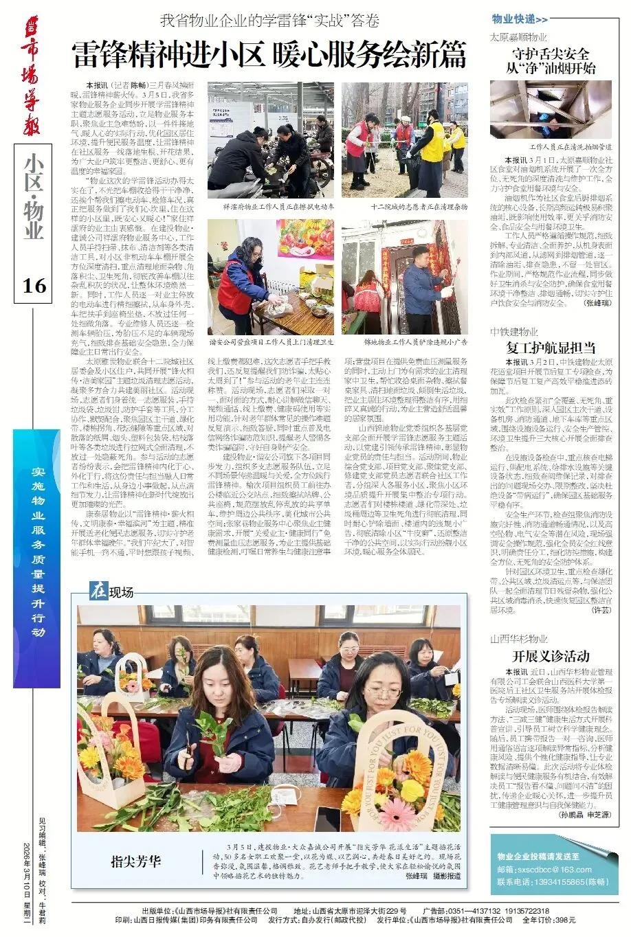 《山西市场导报》2026年3月10日(总第2473期) 3月1日,太原嘉顺物业社区食堂对油烟机系统开展了一次全方位、无死角的深度清洗与维护工作,全力守护食堂用餐环境与安全。