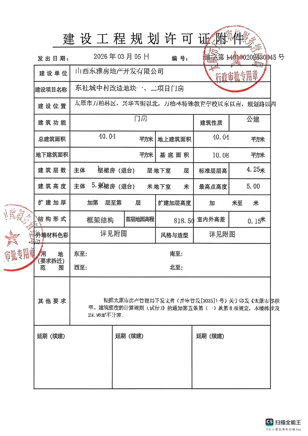 根据《中华人民共和国城乡规划法》、《中华人民共和国行政许可法》等有关规定,现将我局依法审查核准的东社城中村改造地块一、二项目建设工程规划许可证予以公告。