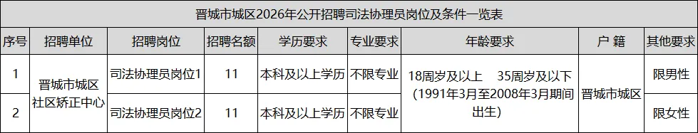 本次共招聘司法协理员22名(男女各11名),属编制外人员