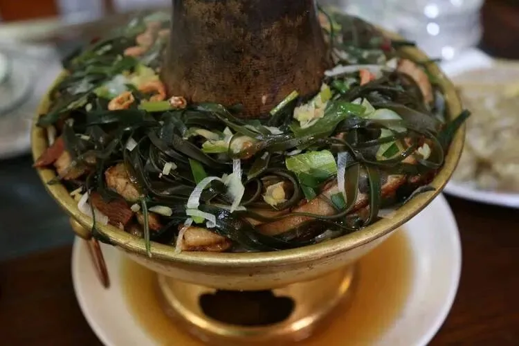 太原冬日“团圆图腾”。平遥紫铜锅,炭火慢煨,底层铺白菜丸子粉条,中层码烧肉、炸豆腐,顶层覆海鲜、烧肉,高汤浸润、层层出香,围炉而食,暖意融融,可得一镬三味之享。