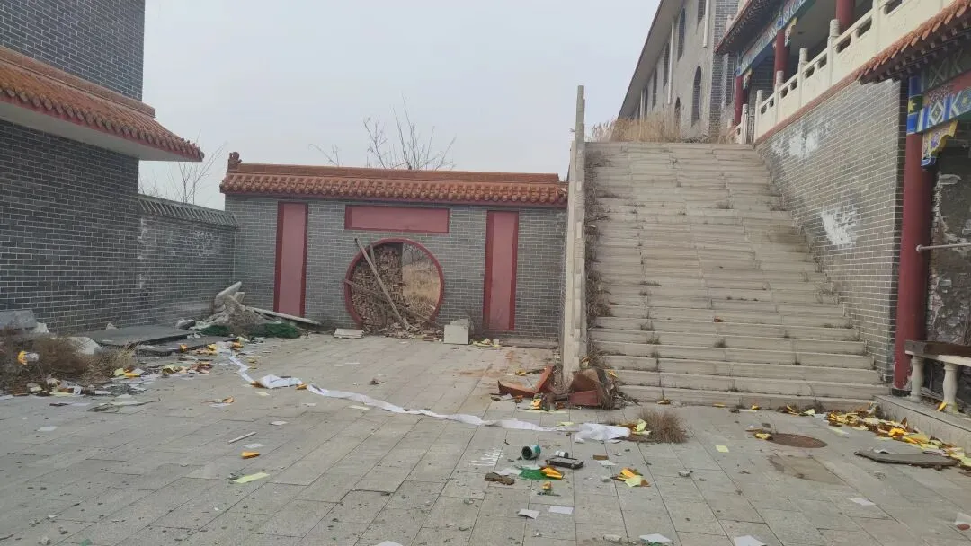 红墙黄瓦依旧巍峨,斗拱彩绘尚存余韵,汉白玉栏杆的浮雕依稀可见昔日气派,脚下是碎裂的地砖与遍地的垃圾,在齐腰的荒草行走,风卷着残留满地的祈福金纸,在空无一人的庭院里打转。想起小伙子那句“野佛”,再看着眼前的荒凉,心里竟生出一丝莫名的凉意,长这么大还是第一次在寺庙里感觉到害怕,还好有两个小伙子结伴,要不我一个人真不敢进来。从香火鼎盛到荒野孤寺,这短短十几年,到底发生了什么?