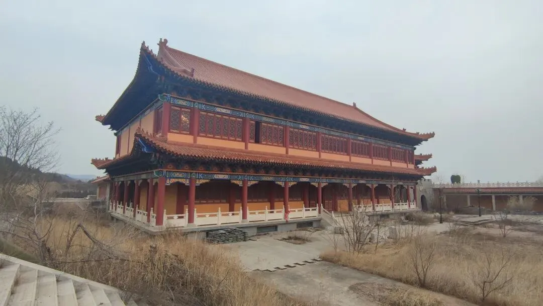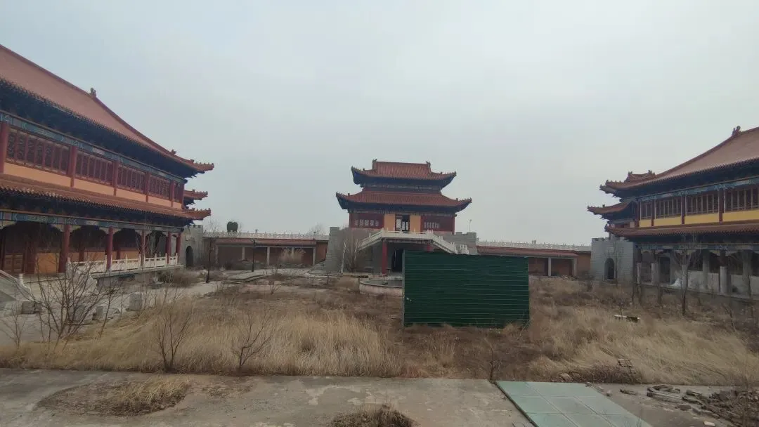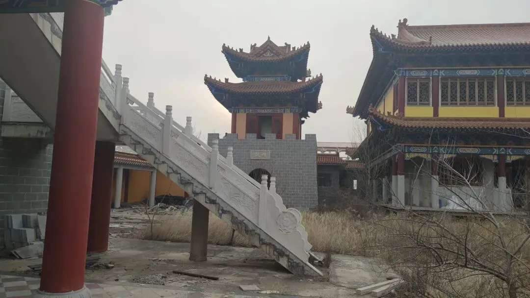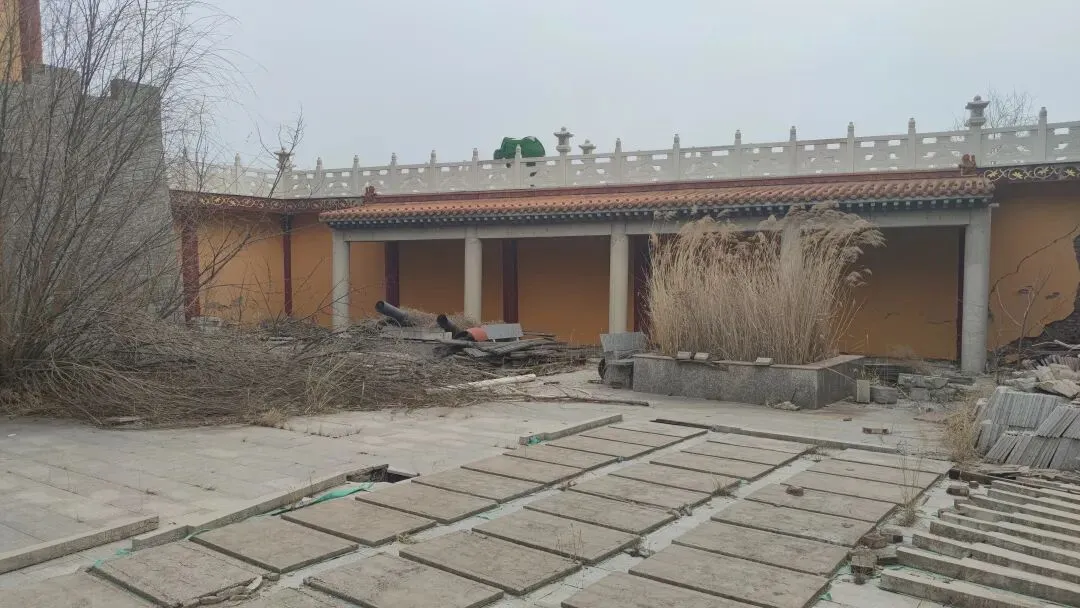 可谁也没有想到,工程在主体完工后,慢慢停了下来。机器声消失了,工人走了,工地静了。这一停,就是好几年。如今的卧佛寺,成了一座“半成品”:大门紧锁,锈迹斑斑;侧殿内部空空,佛像未立;庭院荒草疯长,台阶被淹没;脚手架在风里嘎吱作响,像一声声叹息。