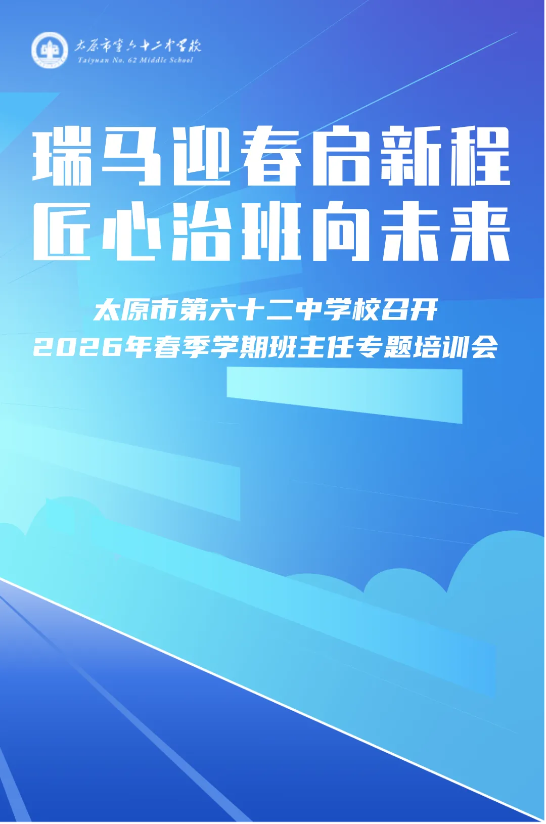 为夯实新学期班级管理工作,打造专业过硬的班主任队伍,太原市第六十二中学校于近日开展2026春季新学期班主任专题培训工作,从健康防护、心理护航、德育部署、智慧赋能多维度为班主任充电。