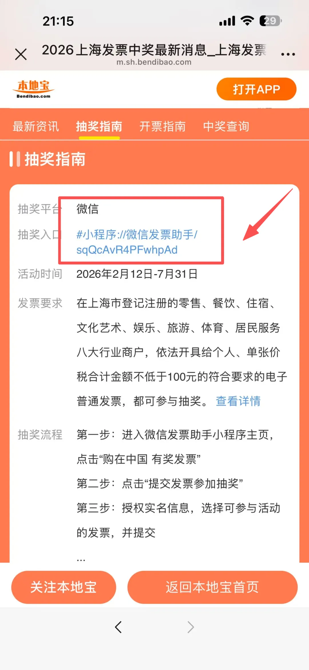 进入查询工具后,在城市列表里找到【上海】,点进攻略后点击【抽奖指南】,就可以看到发票抽奖的入口,点击就会自动跳转到抽奖界面,无需再来回切换各个地点。