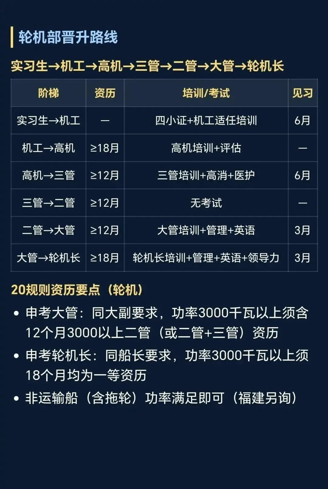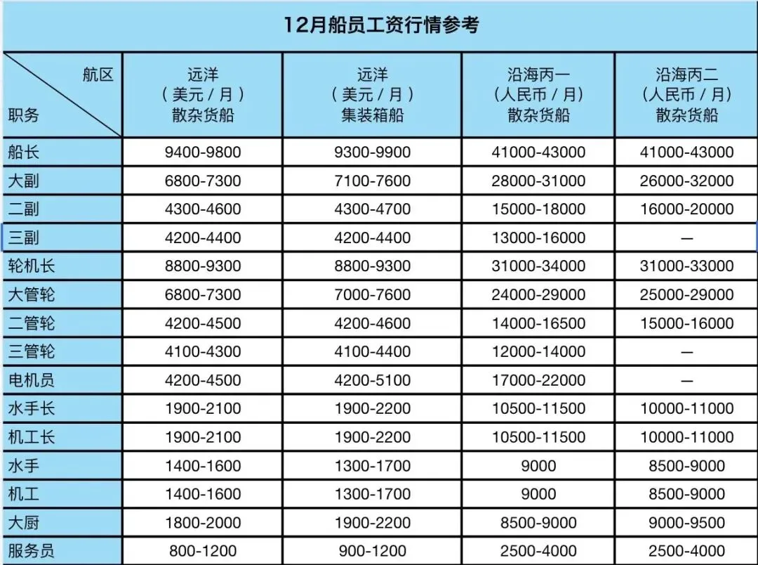 上图为水手、机工的晋升路线,三管、三副的晋升之路要短得到多,如果学历能够达到要求,那也建议大家从三管、三副的起点开始,薪资也会更高一些。