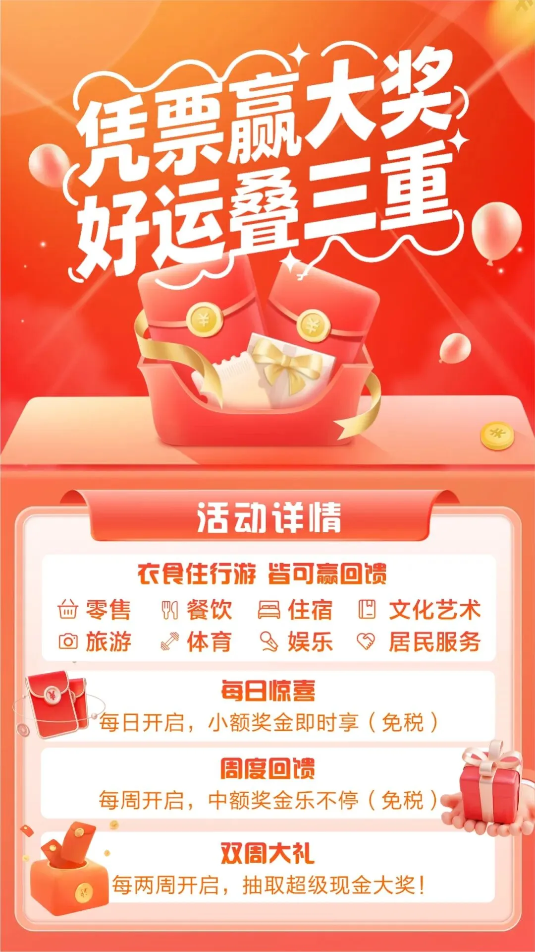 本次有奖发票活动坚持“普惠性”与“激励性”相结合,设置三种抽奖模式、多层级奖项,让广大消费者都有机会中奖。