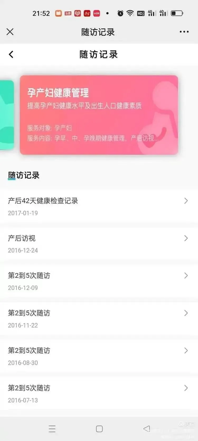 可以查看慢性病患者、0-6岁儿童、孕产妇健康管理的随访记录: