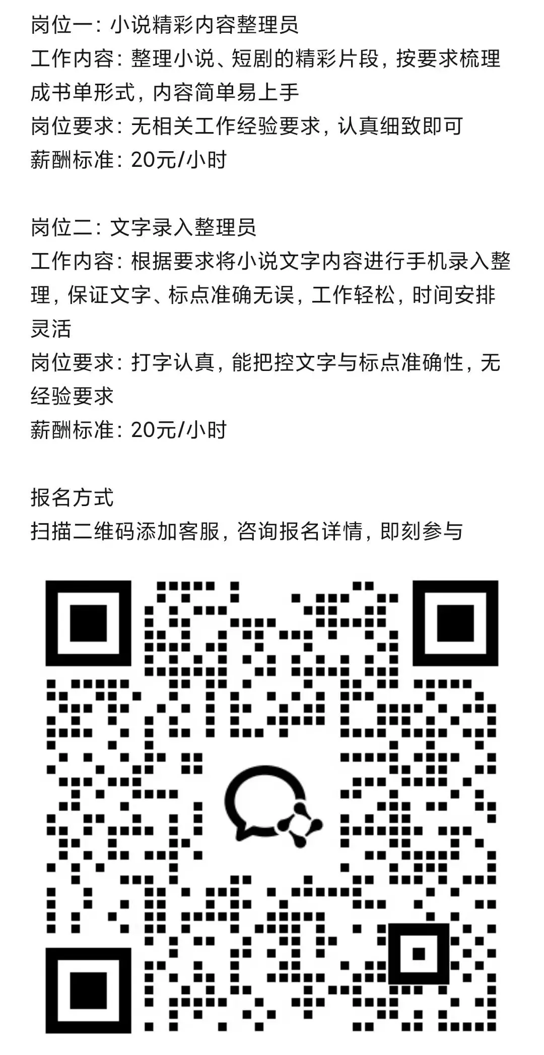 待遇:21一个小时,包吃,吃饭不扣时