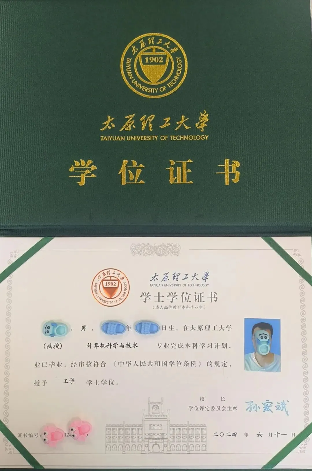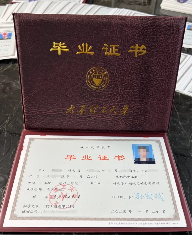 :修完教学计划规定内容,成绩合格者颁发太原理工大学成人高等教育毕业证书,学信网可查。