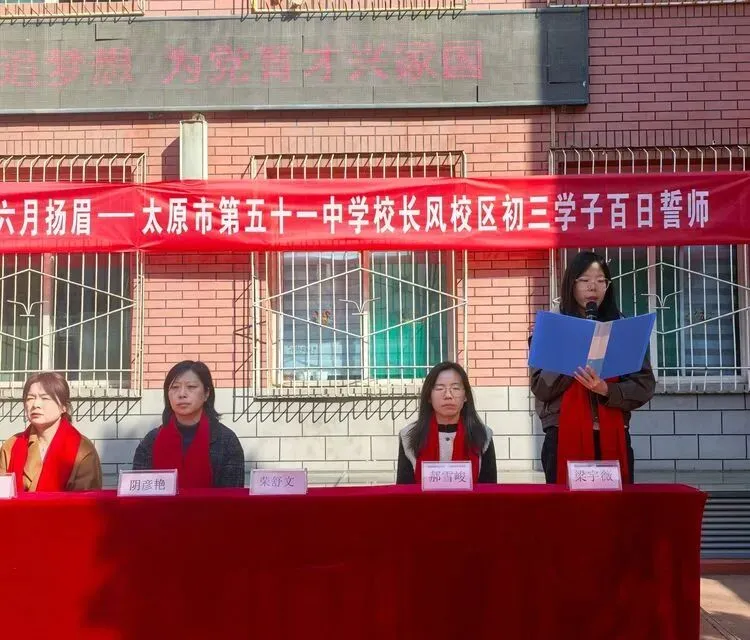 春潮涌动,战鼓催征。3月11日,太原市第五十一中长风校区操场上旌旗猎猎、士气高昂,2026届初三中考百日誓师大会隆重举行,全体师生齐聚一堂,共同吹响中考冲刺的号角。