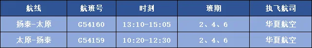 3月31日起,华夏航空将正式开通扬州泰州国际机场至太原的直飞航线,为扬泰地区市民及旅客架起一条连接江南温婉与三晋豪迈的空中快速通道,让春日赴一场千年文旅之约不再是遥远的憧憬。