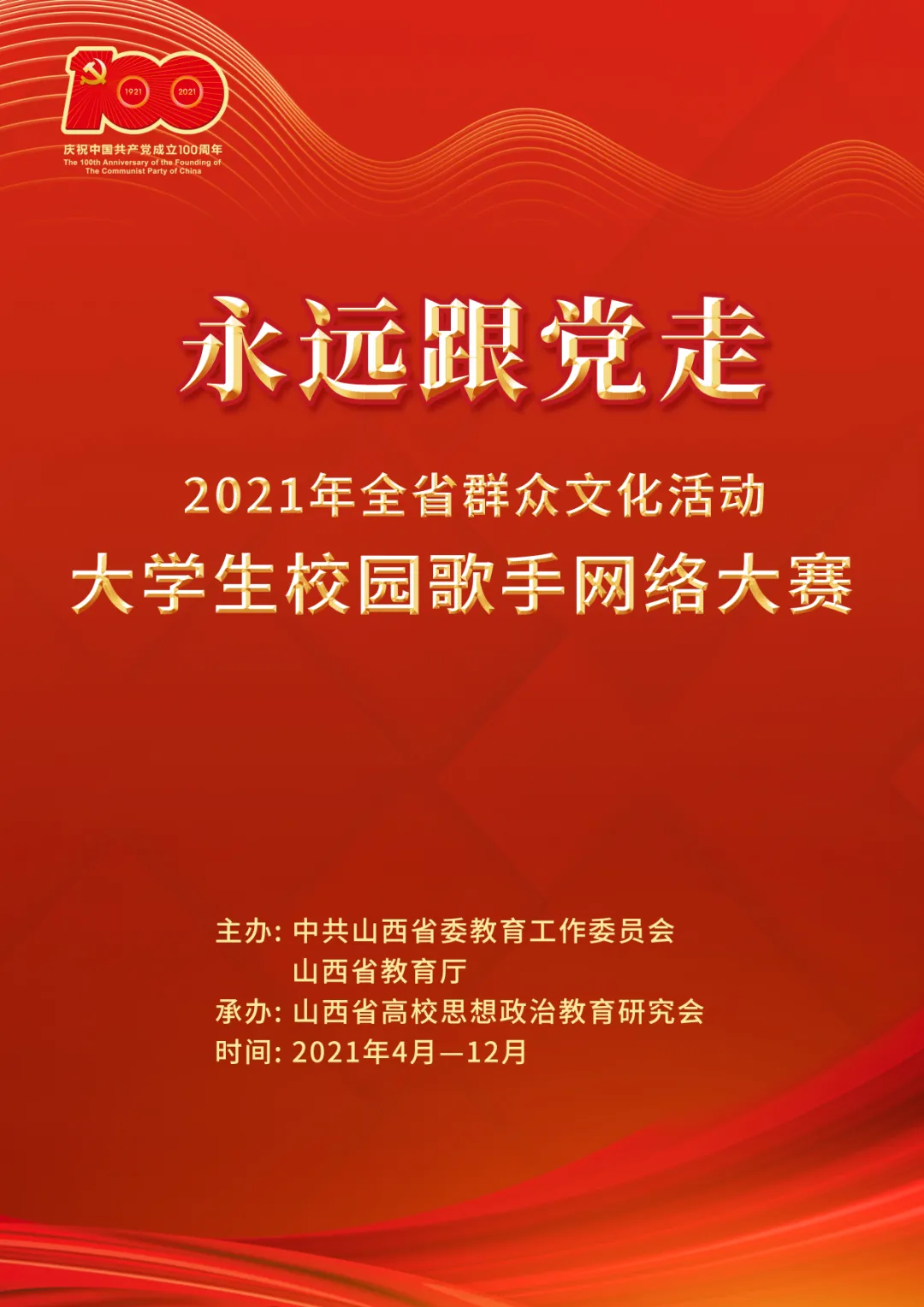 为庆祝中国共产党成立100周年,在我校大力营造“党的盛典、人民的节日”团结奋进、开创新局的浓厚氛围,生动展示我校校园文化建设的新成果,展示广大师生担当作为、奋发有为的新风貌,大力唱响共产党好、社会主义好、改革开放好、伟大祖国好、各族人民好的时代主旋律,按照省委教育工委、省教育厅《关于组织开展“山西省大学生校园歌手网络大赛”的通知》要求,我校圆满举办2021年太原理工大学校园歌手大赛,在本次大赛中脱颖而出的优秀选手将作为我校校园月度擂主代表太原理工大学继续参加全省赛事。