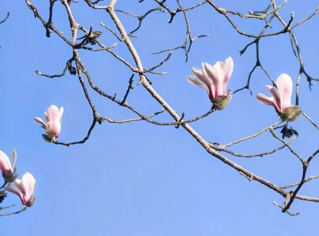 待到春风送暖,玉兰便脱去“冬衣”尽情盛放,白玉兰洁白无瑕,紫玉兰风姿别样,满树清新雅致。
