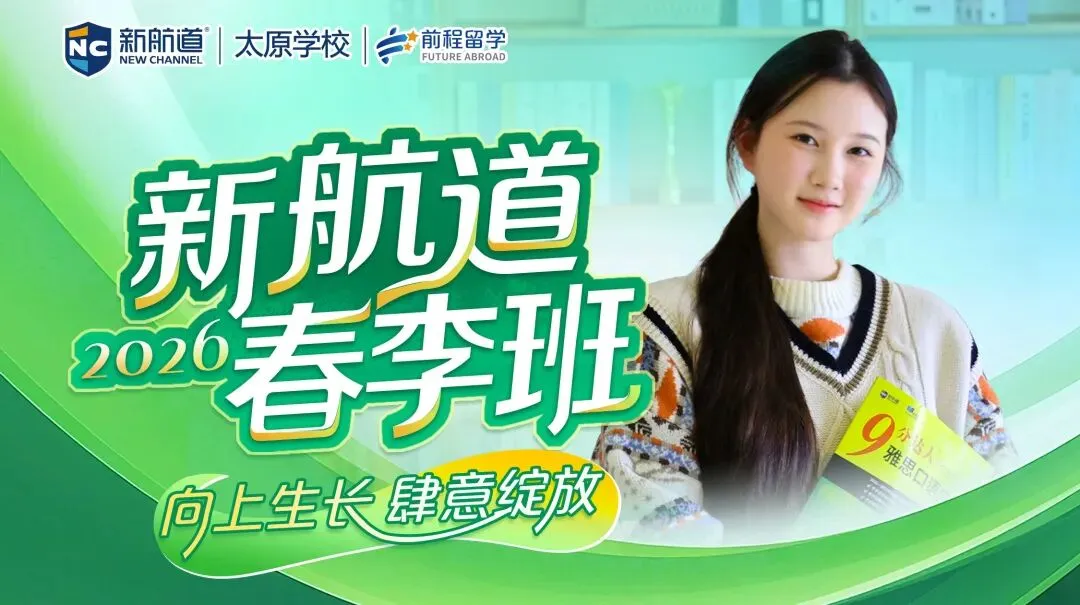 春风拂过汾河两岸,万象更新,正是奋发读书时!2026 年新学期已然开启,新航道太原学校春季班招生全面启动 ✨ 立足龙城,服务三晋,我们集结雅思、托福、A-Level、考研英语、多语种等全明星课程,早鸟优惠限时放送,用专业与实力,为山西学子的留学梦与高分梦保驾护航,让每一次努力都在春天向阳而生!🌿