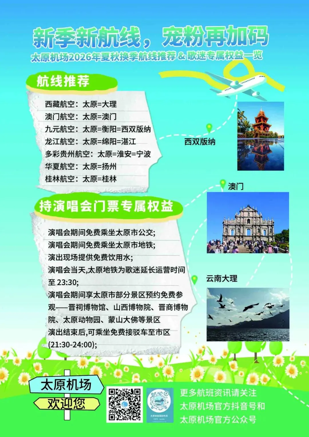 太原机场2026年夏秋换季航线推荐与歌迷专属权益一览