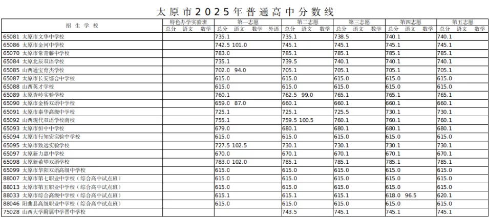 近三年的中考分数线对考生的志愿填报有积极的指导意义,但要注意2025的中考总分为850分,2023年、2024年的中考总分为 730分。