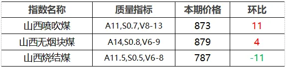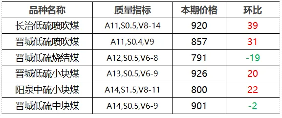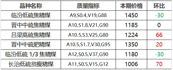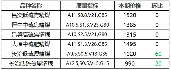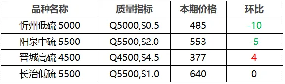 4.市场价格主要为中国太原煤炭交易网自动成交交易价格,个别为企业报价(坑口含税)。