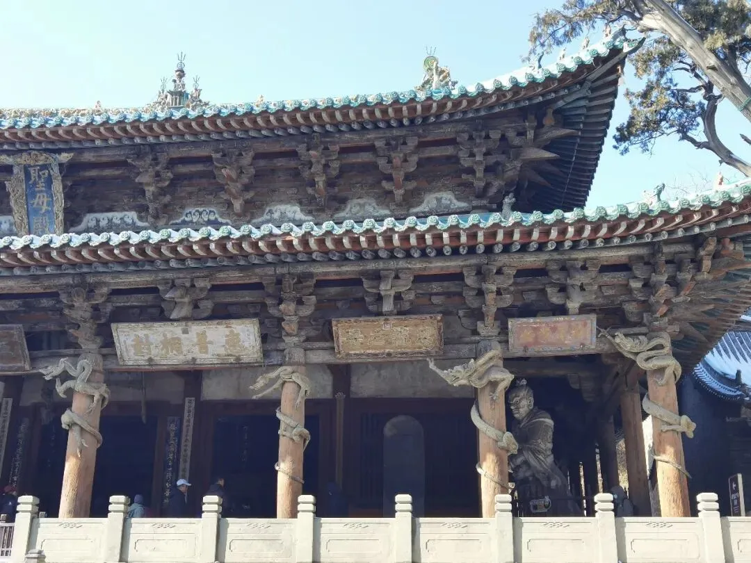 有意思的是,面对圣母殿,右边数起的第二根柱子上的盘龙像是比了个“yeah”。