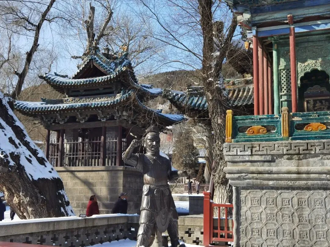 金人台上铁铸神将的形象与泥塑侍女像,一刚一柔,相映成趣。