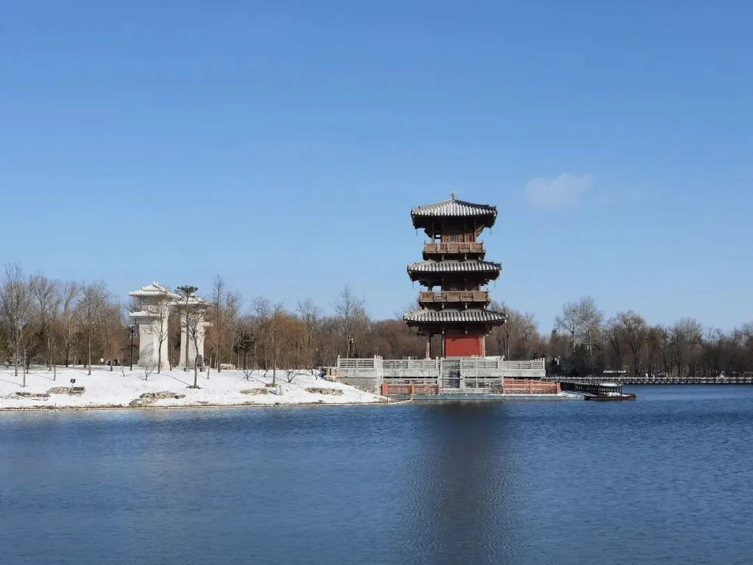桥面东西宽阔,南北翼如。鱼沼上架桥,桥形如鸟,展翼如飞,顾称“鱼沼飞梁”。