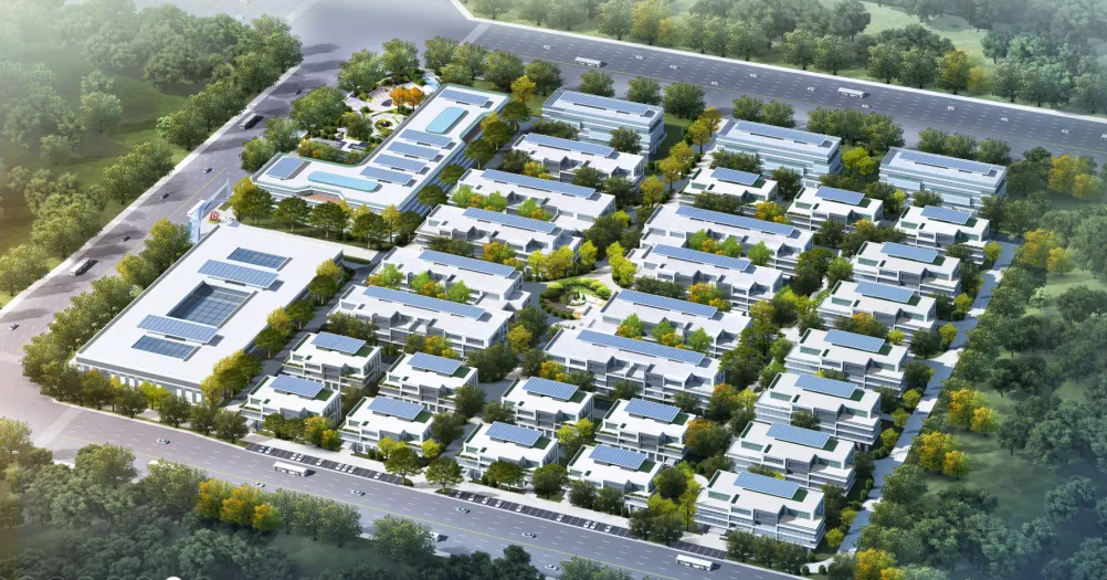 绿谷碳中和环保科技园坐落于山西综改示范区化章街与龙湖街交汇处,是山西首个以“碳中和”为主题的沉浸式近零碳科技示范园区。园区占地约150亩,总建筑面积约16万平方米,重点面向节能环保、新能源、新材料、物联网、智能制造等绿色低碳产业,为企业打造独栋总部基地和研发智造空间。