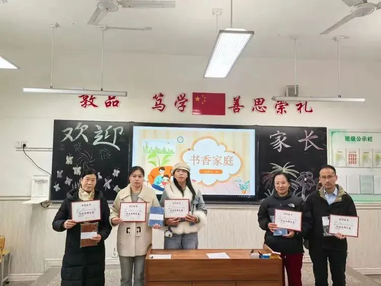 在热烈的掌声中,班主任为荣获“书香家庭”称号的家庭颁发奖状。这些家庭营造浓浓的阅读氛围,愿书香浸润更多家庭。
