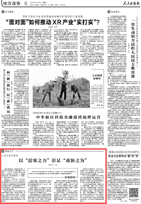提案里越来越多的“金点子”,有效转化为增进民生福祉、助力高质量发展的“金钥匙”。这一转化的背后,是市政协党建引领作用的持续强化,更是市政协深刻把握新时代人民政协工作的规律特点,积极探索履职创新,助力高质量发展的生动实践。