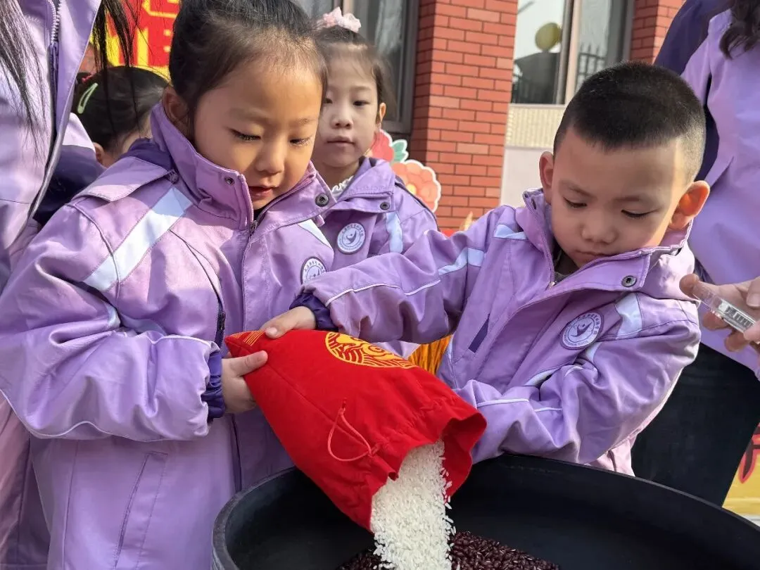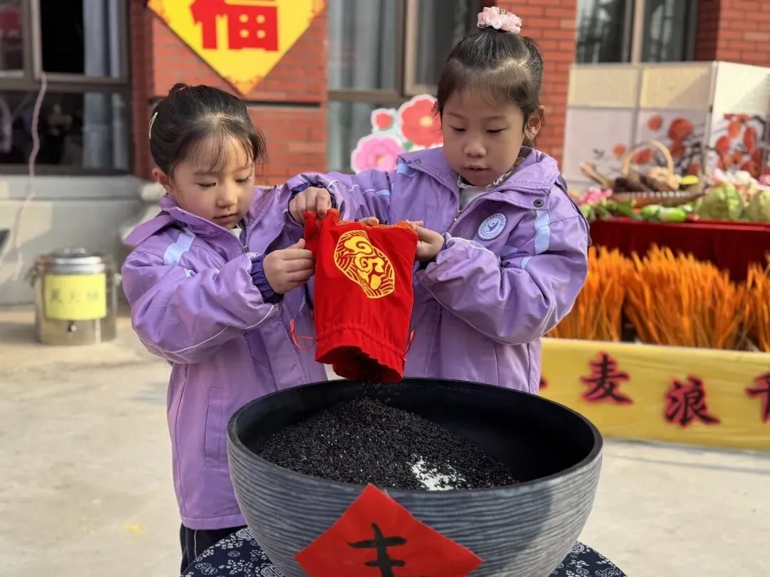 “一袋小米,岁岁丰收;一把红豆,红红火火……”在庄重而温馨的“集百福”仪式中,五色福种汇聚一堂,承载着许多家庭的美好期盼,也象征着幼儿园“汇聚百家之福,育养一方童心”的教育初心。