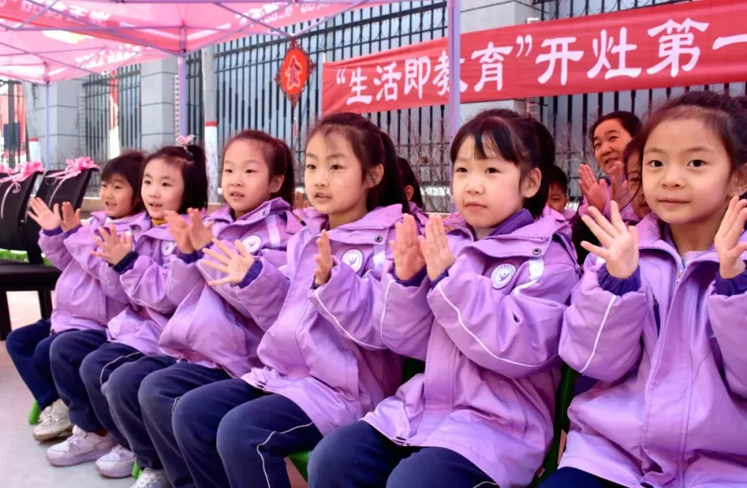 紧接着,杨校长、姚书记、付校长、景校长共同为“食育土灶”剪彩开灶。红绸落下,掌声雷动!