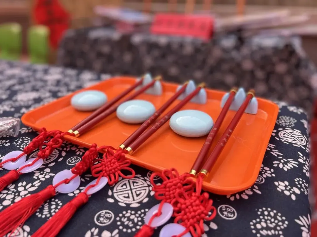 杨校长、姚书记共同用红枣为五谷“福”字添上点睛一笔,寓意福气满满。随即,校领导及各班老师为孩子们轻点朱砂。