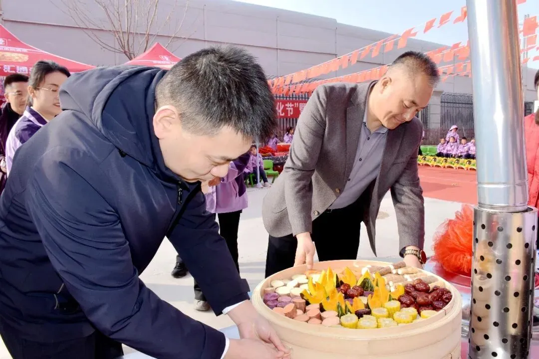 熊熊灶火腾空而起!百家第一锅正式下锅!大家将汇集而来的“百家福种”与红枣、山药、南瓜、玉米等食材一同放入蒸笼。张园长郑重盖上锅盖——“开锅大吉”!