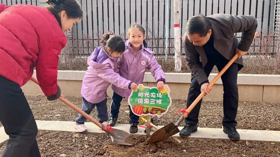“一锄平安顺遂,二锄健康快乐,三锄五谷丰登,满园兴旺!”在领导们的开锄带领下,孩子们扛起小农具,插班牌、翻土壤——这是属于他们的第一堂劳动课,更是生命教育的第一课!