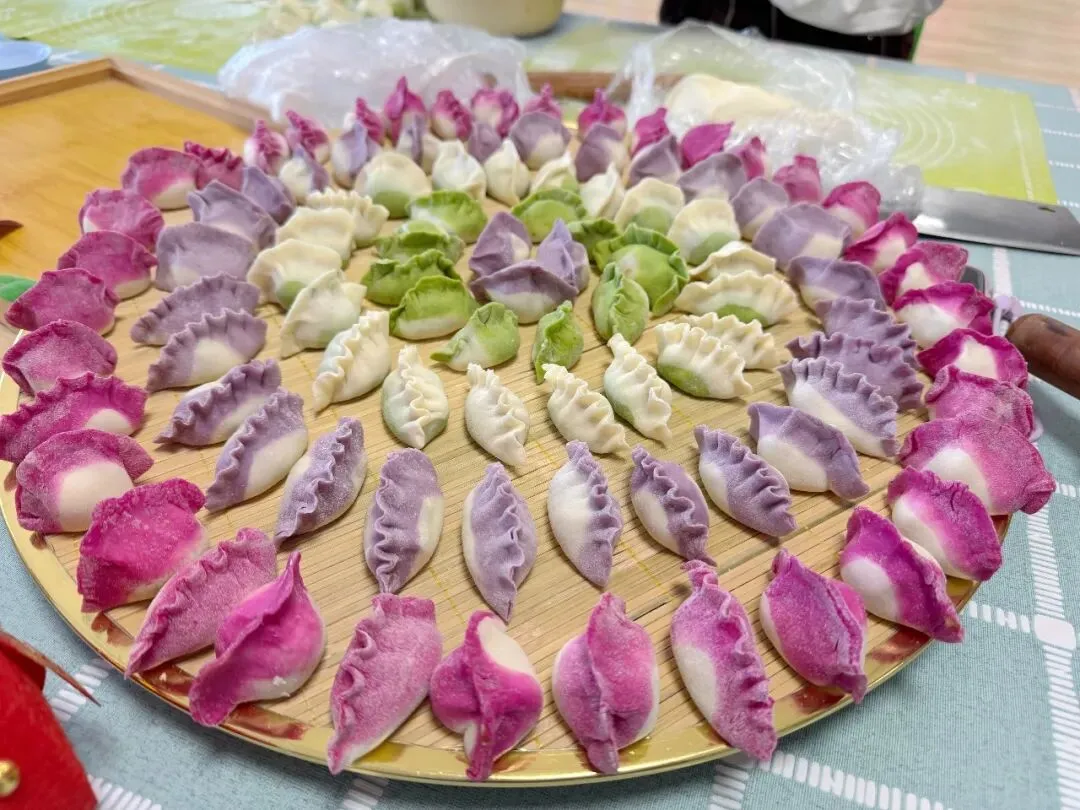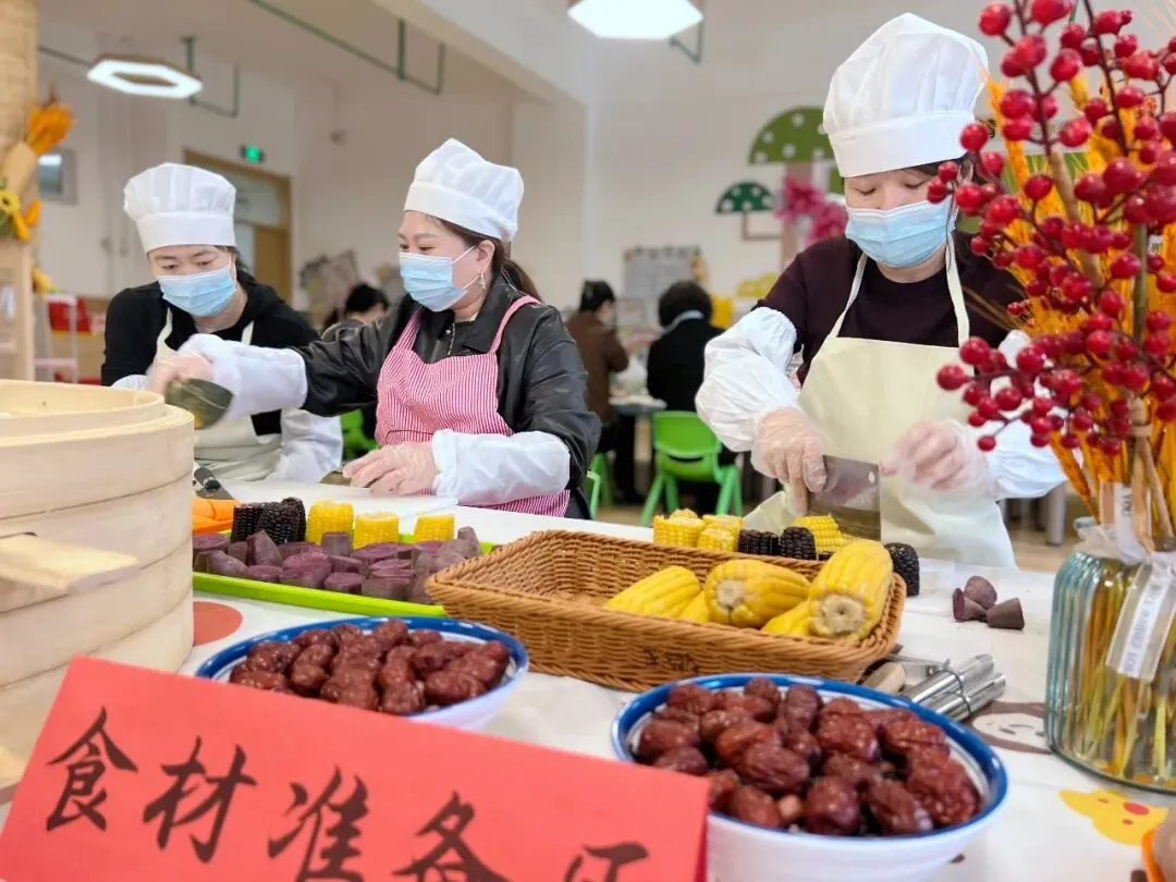 上午10时,热气腾腾的“百家福种饭”出锅!与此同时,食育活动室内香气四溢:五彩饺子皮在一捏一折间包住健康、包住福气;金黄酥脆的曲奇饼干从烤箱中新鲜出炉。