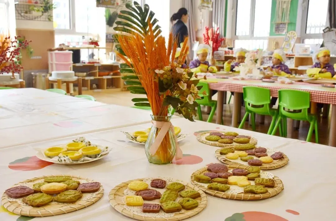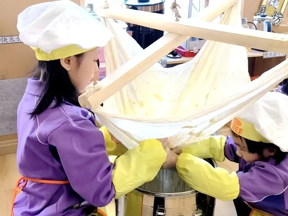 全年每班6节精品食育课:磨豆腐、晒果干、拓月饼、包粽子……让孩子们在动手操作中感受饮食文化的魅力。