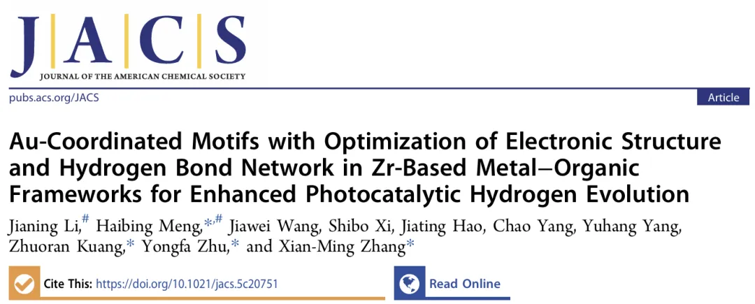 针对金属有机框架(MOF)光催化剂载流子利用率低、质子传输能垒高的问题,通过在锆基MOF(NU)中接枝不同氮杂环配体,构建了原子级分散的Au-N/O配位结构。结果表明,引入吡唑单元(2N)形成的Au/NU-2N催化剂,不仅提升了Au位点的氧化态、促进了光生电荷分离与转移,还通过吡唑-水相互作用强化了氢键网络,将质子传输活化能降至0.17 eV。该催化剂在抗坏血酸作为电子给体时,产氢速率达261.43 mmol g⁻¹ h⁻¹,表观量子效率为1.41%(400 nm),且连续运行64小时性能稳定。