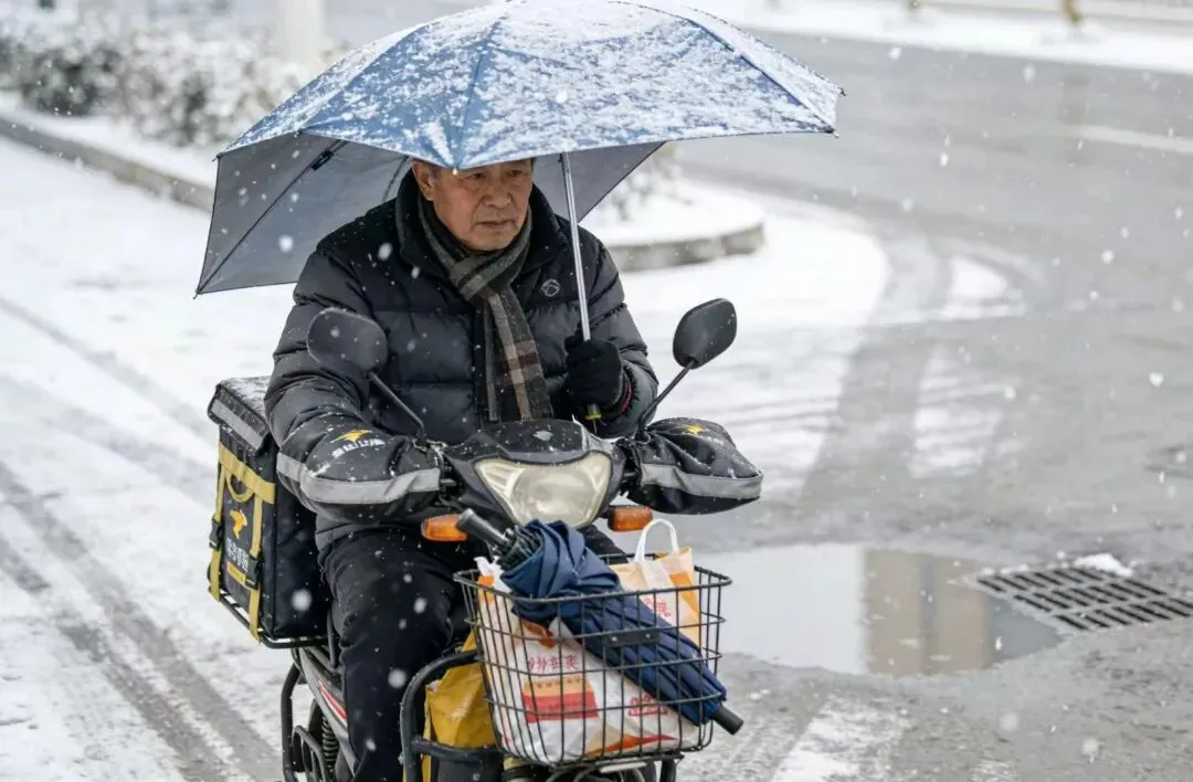 凌晨5点,外卖员老周就醒了。手机弹出太原雨雪预警时,他第一反应不是“不想出门”,而是赶紧找出防滑链装到电动车上,又往包里塞了两件厚外套、两包暖宝宝。