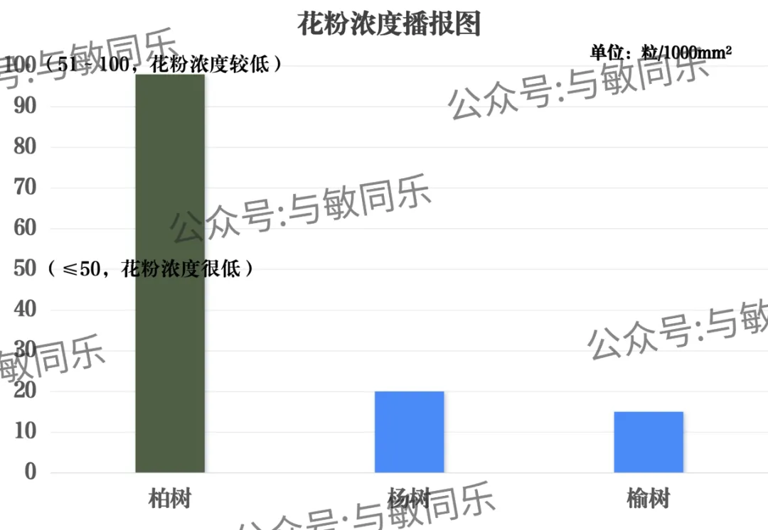 杨树、榆树花粉浓度为很低。